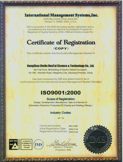 杭州驊泰智能科技有限公司位于享有“天堂硅谷”美譽(yù)的杭州市高新技術(shù)產(chǎn)業(yè)開(kāi)發(fā)區(qū)內(nèi),公司原名杭州浙大華泰科技有限公司,成立于2001年4月,公司是由浙江大學(xué)及公司骨干持股形式組成的一家高科技企業(yè),公司以浙江大學(xué)雄厚的科研水平及技術(shù)人才為依托,以振興和發(fā)展我國(guó)民族高科技產(chǎn)業(yè)為己任,致力于計(jì)算機(jī)硬件、軟件、系統(tǒng)集成及相關(guān)信息電子類(lèi)產(chǎn)品的研發(fā)、生產(chǎn)、銷(xiāo)售工作?!? 公司匯集了一批在LED電子顯示屏行業(yè)及其他相關(guān)專(zhuān)業(yè)具有十余年技術(shù)開(kāi)發(fā)及工程施工經(jīng)驗(yàn)的技術(shù)精英,具有強(qiáng)大的系統(tǒng)方案設(shè)計(jì)及項(xiàng)目施工能力及完善的售后服務(wù)體系。
